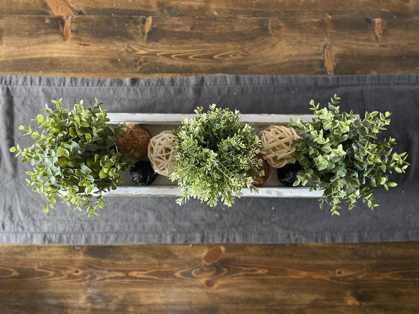Un plateau en bois, avec une plante de saison à l’intérieur, peut devenir un centre de table d’été parfait. Il est très facile à réaliser et s’accorde avec tout style de déco.