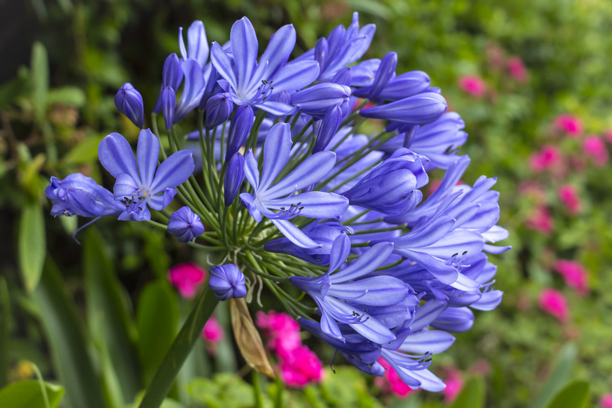 Cette plante, l’Agapanthus, avec ses fleurs bleues, est un délice dans le jardin mais aussi en pot