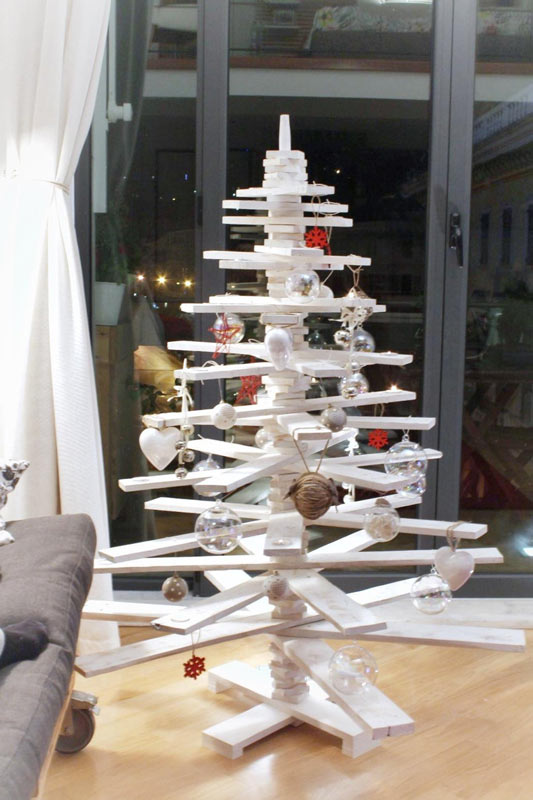 - Posez un sapin fait de planches peintes en blanc dans votre salon ;