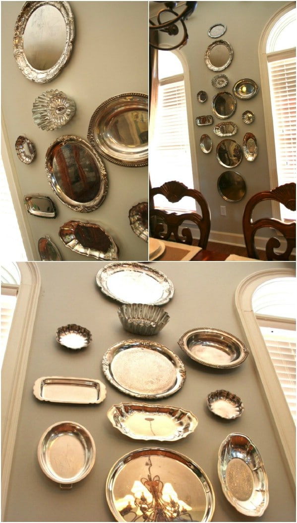 C’est une excellente idée pour réutiliser des objets légers, mais vous pouvez aussi incorporer des pièces plus récentes pour un mélange encore plus original et créatif. Par exemple, vous pouvez acheter de magnifiques fausses boîtes de cuisson ou de service en métal à un prix abordable dans des magasins comme le Dollar Store. Vous pouvez ensuite créer un motif et remplir le mur avec de beaux objets de cuisine vintage. Le résultat sera une décoration originale et frappante pour votre maison, vous permettant de donner une nouvelle vie à des objets inutilisés et d’exprimer votre créativité.